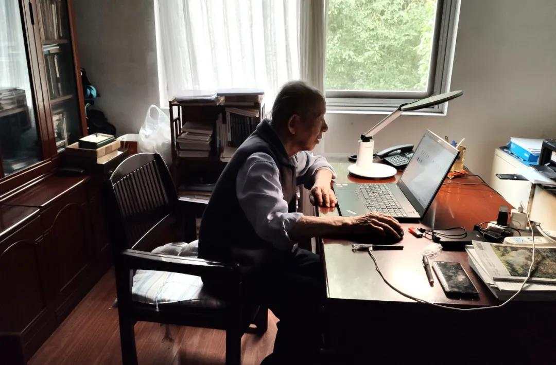 崔崑院士在书房电脑前办公。