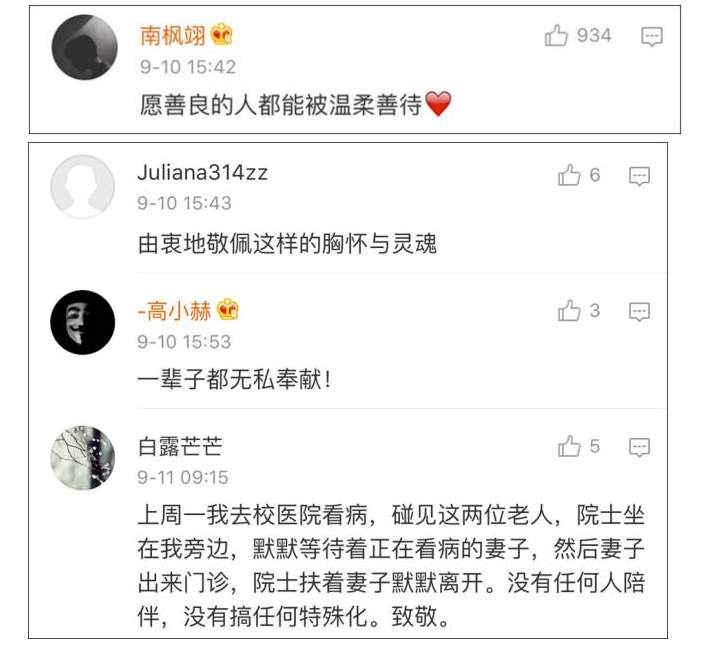 “材化侠侣,家国情怀。”崔崑夫妇捐资助学的事迹,多次引发公众热议。除了受资助者表示感谢,更多人表达感动、致敬和深深祝福。有网友称赞说,崔崑夫妇是“国之脊梁”:青年时立志报国,中年时践行不渝,耄耋之年依旧持续奉献、照亮人心,鞠躬尽瘁、师者风范。