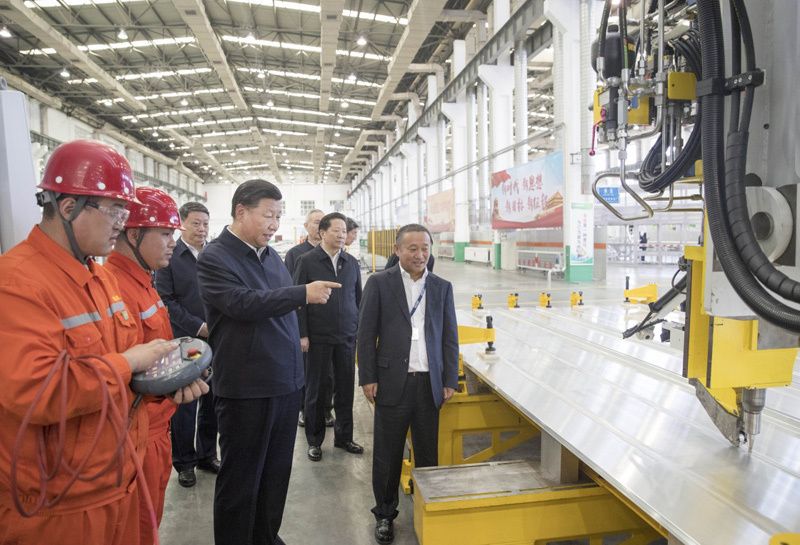 2018年9月27日上午,习近平在辽宁忠旺集团生产车间考察。新华社记者 王晔 摄