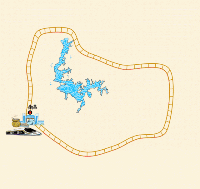 2018年7月20日,江西省开行环鄱阳湖动车,这趟车的起点和终点都是南昌,却不重复经过其他城市,进一步方便了环鄱阳湖城市群间的人员往来。