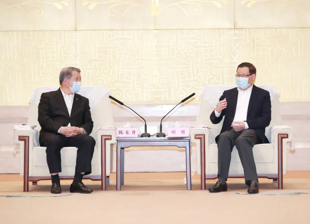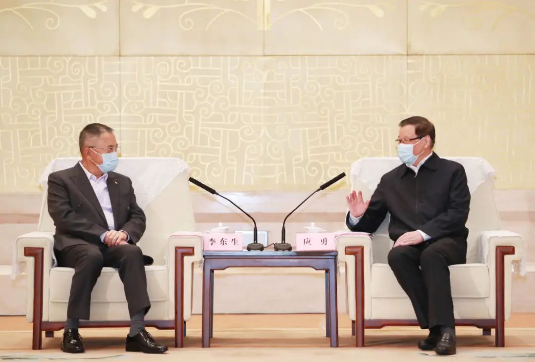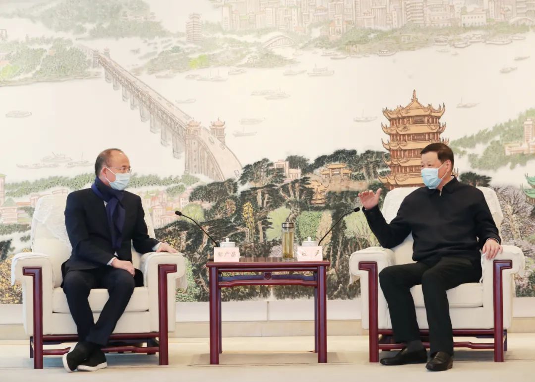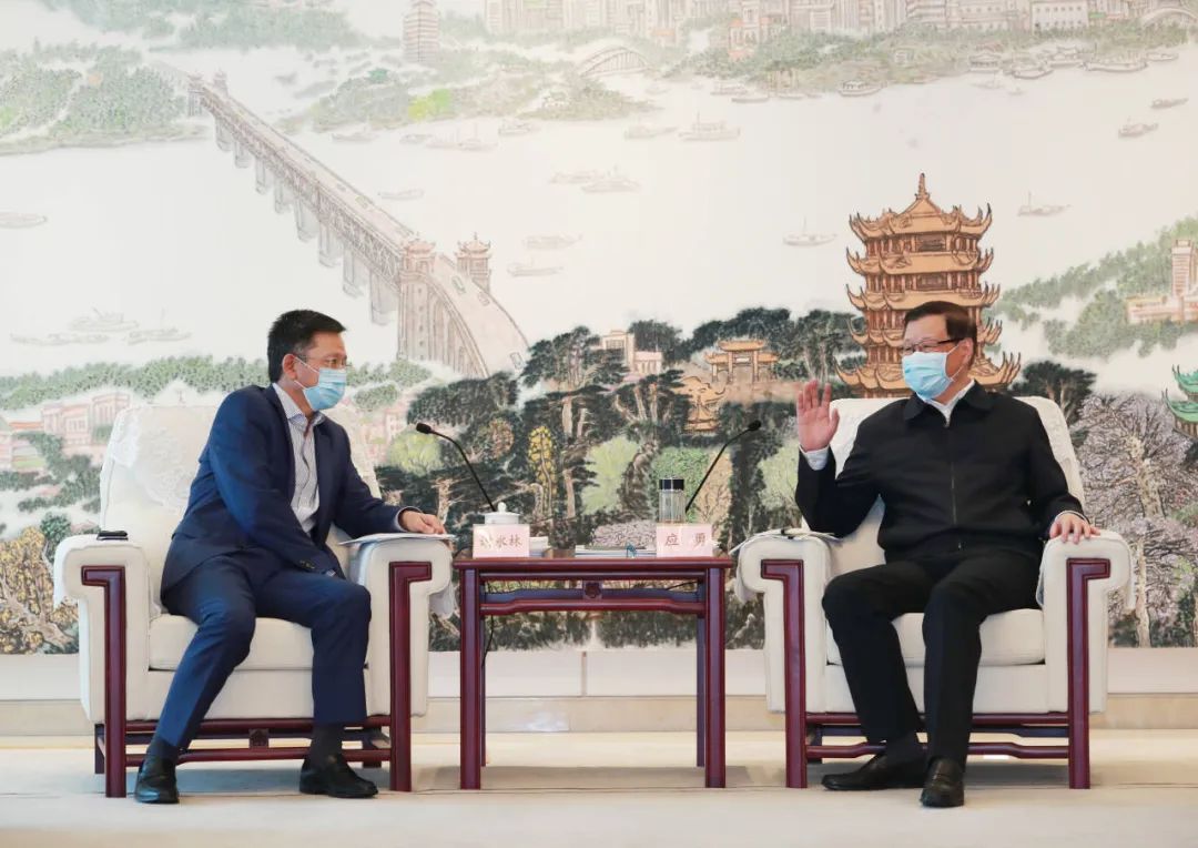 联想集团董事长兼首席执行官杨元庆来鄂,应勇王晓东与他座谈交流