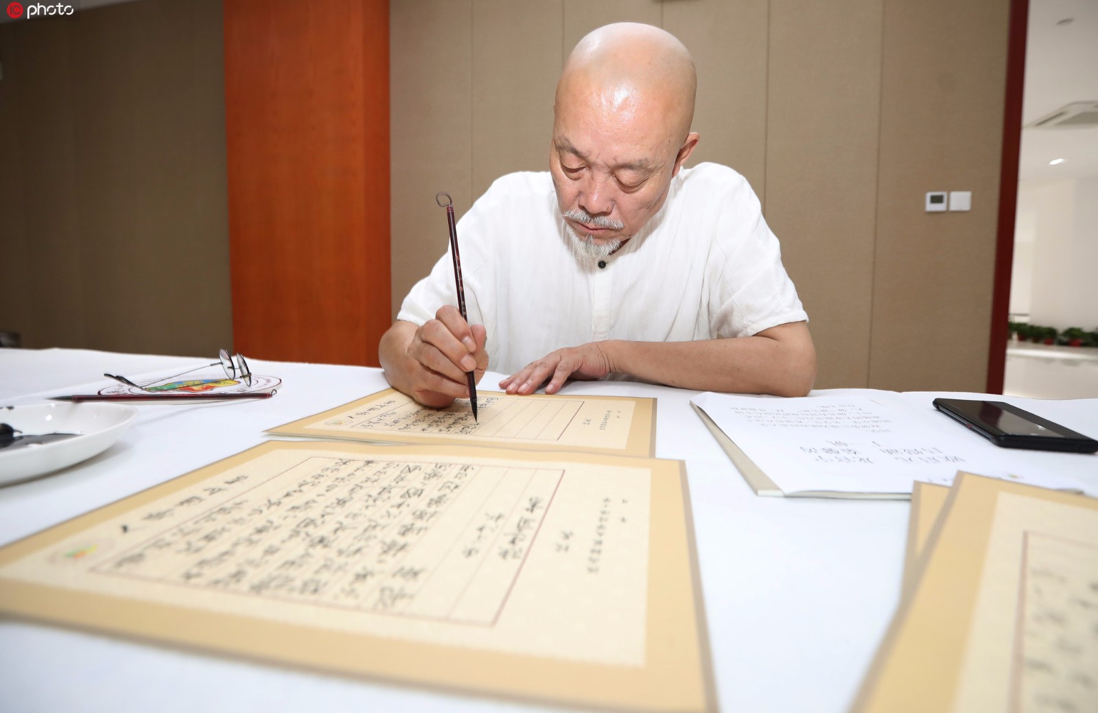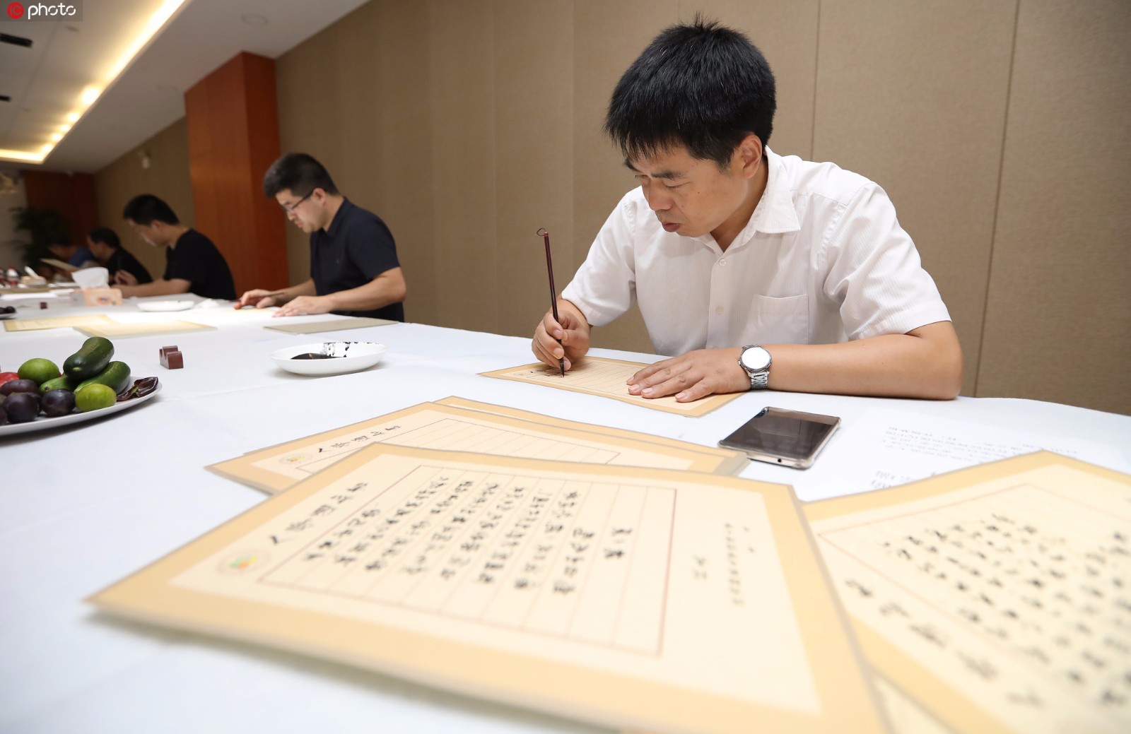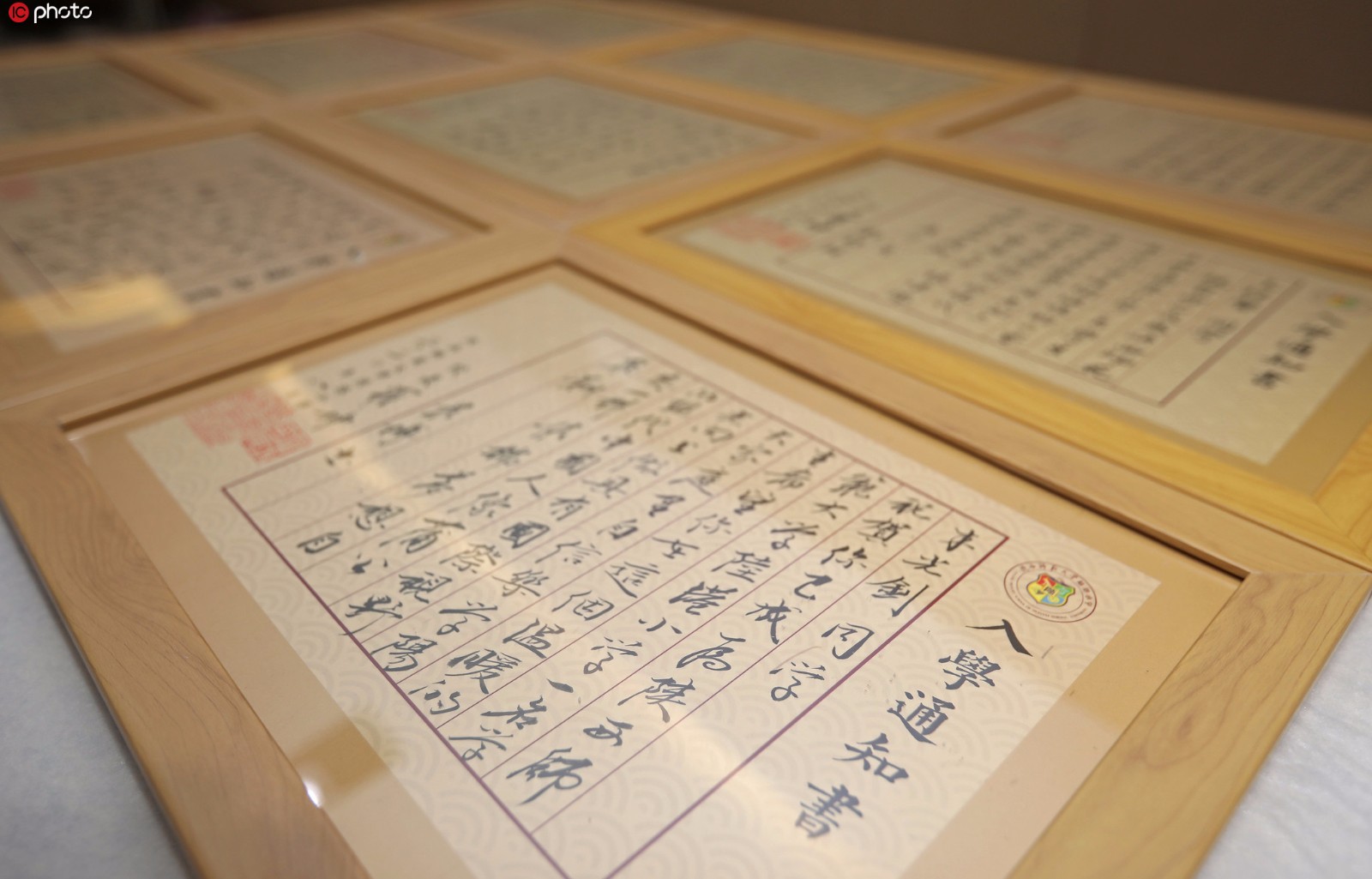 陕西省西安市,十余位书法家走进陕西师范大学陆港小学,为新生手书入学通知书。(图片来源:东方IC)