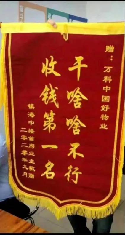 9月5日,一张宁波万科物业收到的锦旗照片在网络上流传。这面由镇海中梁首府业主赠送的“特殊锦旗”上面,赫然写着“干啥啥不行,收钱第一名”十个大字。