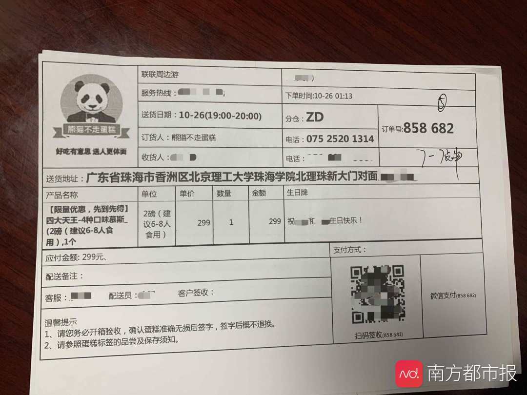 配送员:珠海“熊猫不走蛋糕”否认了我是公司的员工