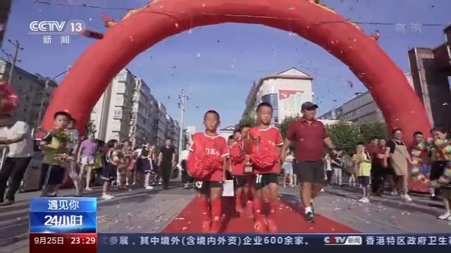 8月13日上午,石门五小的校园里铺上了红毯,搭起了拱门,用热烈的喝彩迎接16名足球小将凯旋归来。