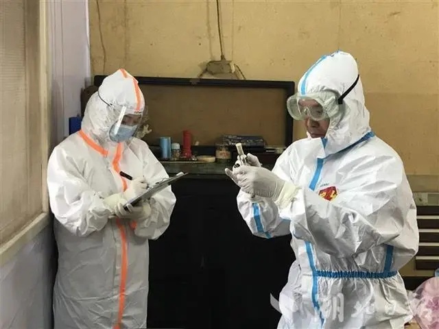 江汉区汉兴街和祥里社区模拟演练采样消杀现场。