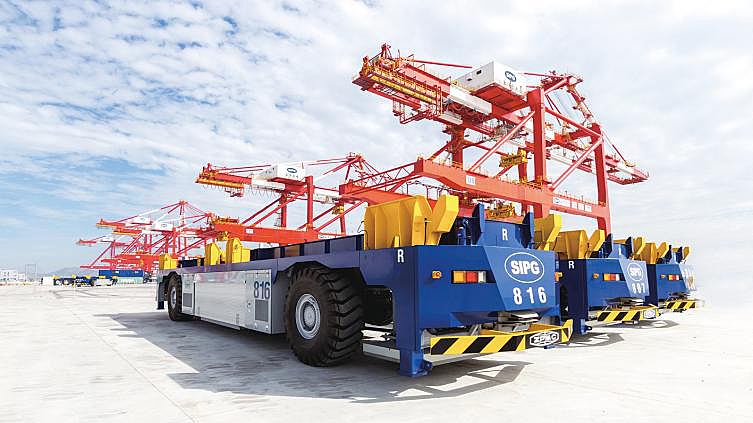 ?6万多枚磁钉感应引导自动化运输车驶往目标箱区。