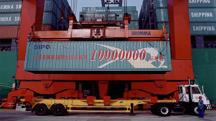 ?2003年11月30日,上海港第1000万箱集装箱起运仪式在外高桥码头举行。
