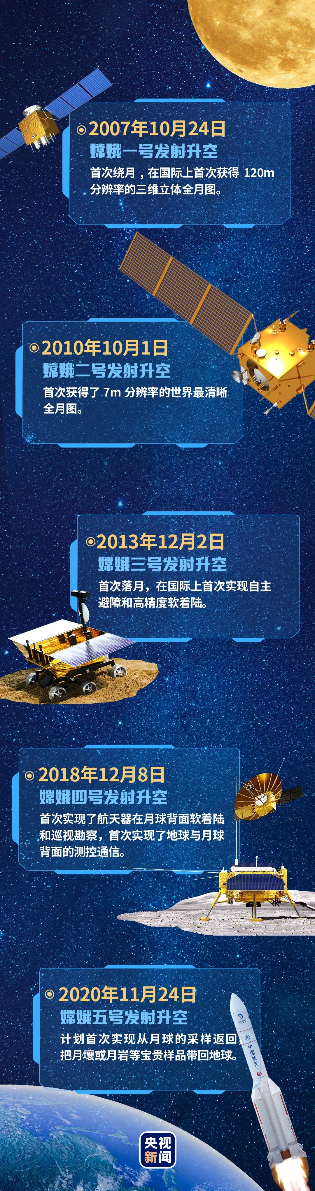 首次自动在月球表面进行月球土壤的采集;首次在月球表面起飞;首次在距离地球38万公里的月球轨道上完成对接与采集物品转移;首次带着月球土壤用接近第二宇宙速度返回地球。