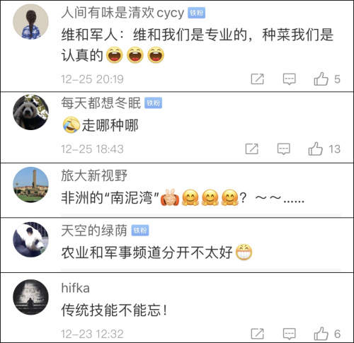 虽然月壤不能种菜的消息让大家备受打击,但看到维和官兵在非洲克服环境困难勇于开垦的画面,网友们再次受到了鼓舞。