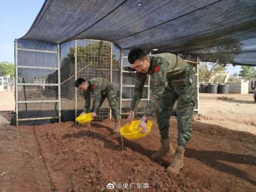 这不,近日,远在非洲南苏丹的中国维和工兵分队,就在非洲南苏丹的营区开辟了块“开心农场”——维和我们是专业的,种菜我们也是认真的。