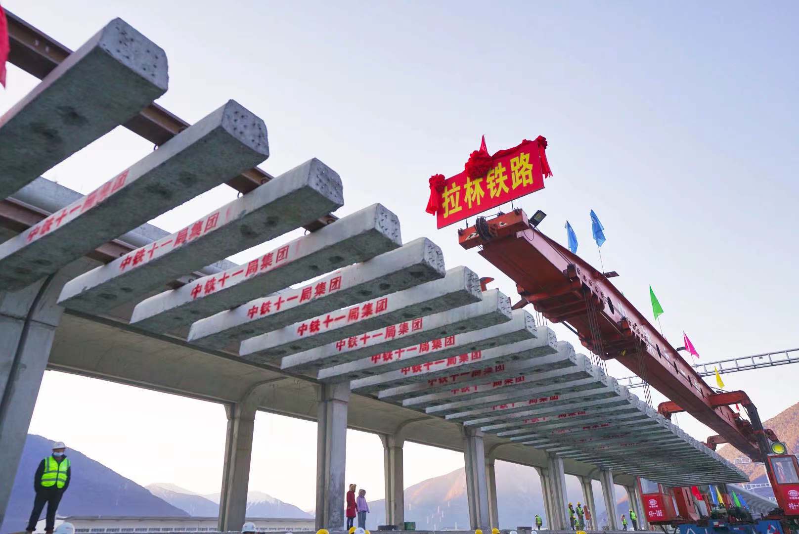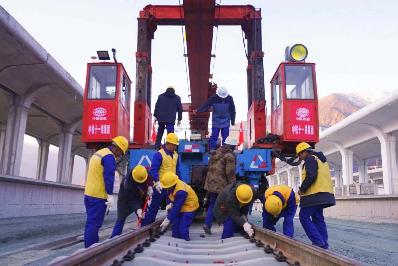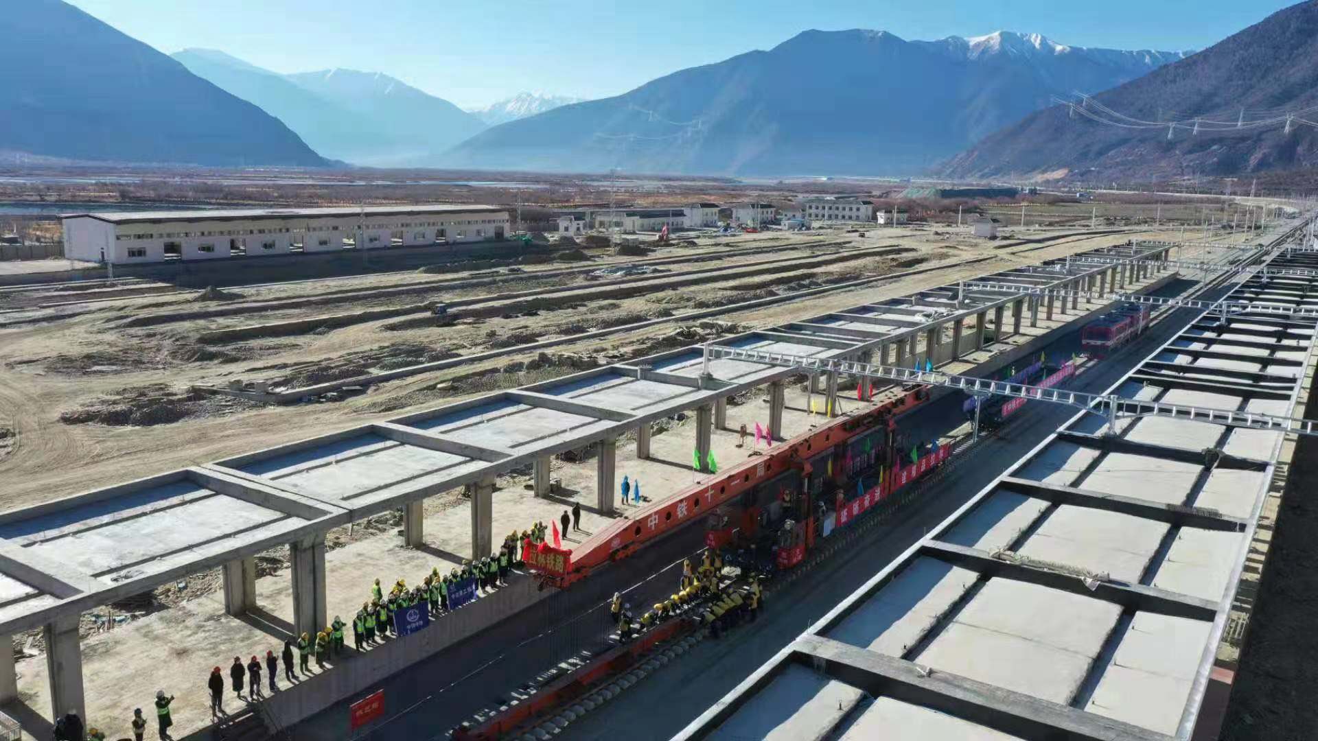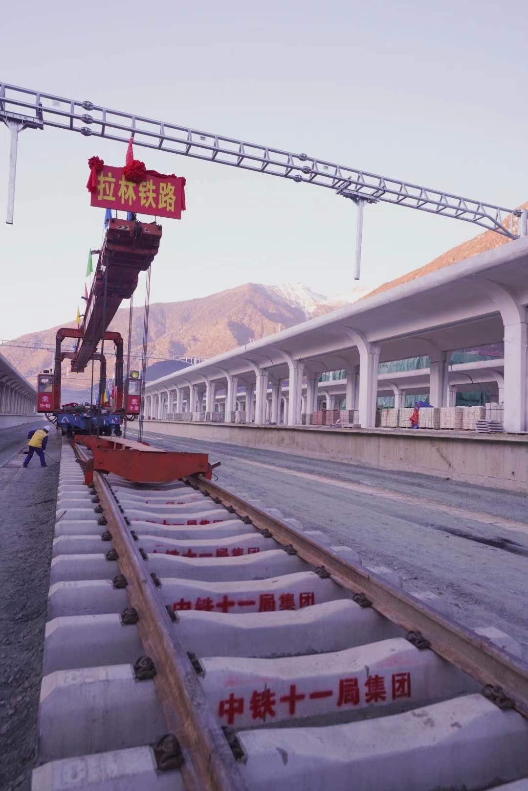 12月31日,在川藏铁路拉萨至林芝段(以下简称拉林铁路)林芝车站铺轨现场,最后一排长25米的轨排铺设完成。这标志着拉林铁路399.61公里的正线轨道铺通,为下一步开通运营打下了坚实基础。