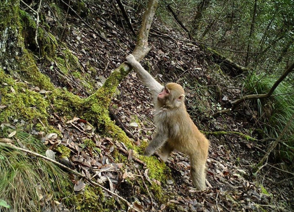 不仅如此,在红外线相机拍摄到的视频中还看到了国家二级重点保护野生动物猕猴,三只猕猴结伴而行,边走还不时回头看看,好像是在提醒同伴不要掉队。