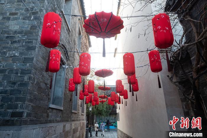 资料图:随着农历牛年将至,南京街头张灯结彩,各种造型的花灯彩灯齐亮相,喜气洋洋迎新春。大红灯笼高高挂起来。 泱波 摄