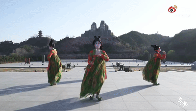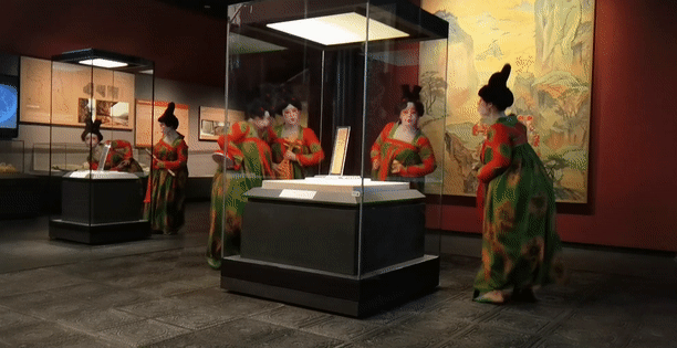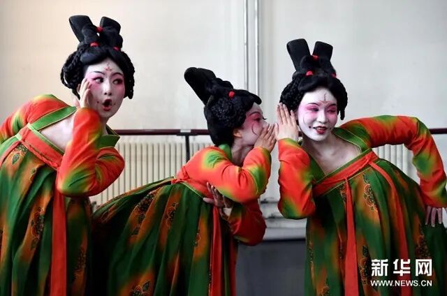 舞蹈演员时而严肃庄重,时而嬉笑打闹,宛如从博物馆中“复活”的“唐宫美人”。