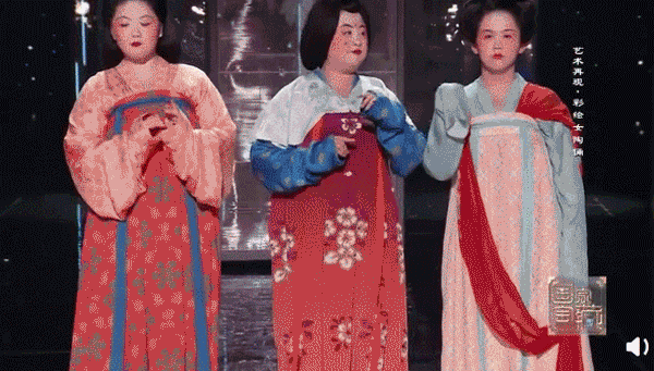 为了体现唐朝女性的丰腴身姿,十四位舞者穿着塞有海绵的连体衣,嘴里还含着棉花。而她们的月牙型妆容“斜红”,以及融入三彩元素的襦裙,更是让观众仿佛穿越回了1300年前的唐朝。