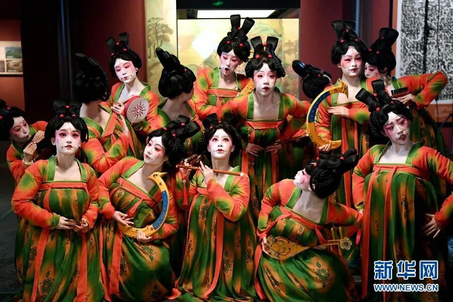 扮演成唐俑的舞蹈演员们宛如从古画中走出。