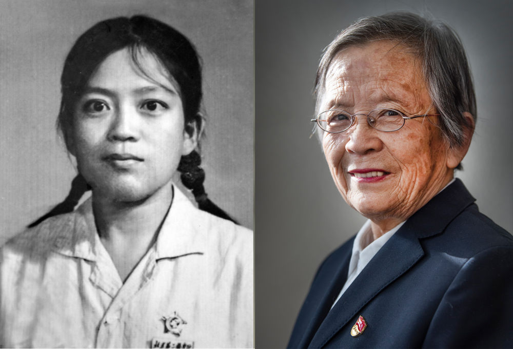 拼版照片:左图为1968年12月北京第二医学院毕业时的路生梅(资料照片),右图为2021年1月18日在佳县窑洞接受采访的路生梅