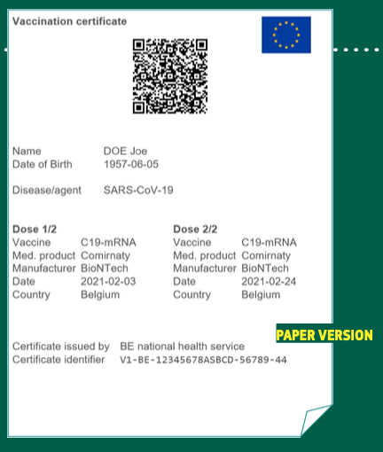 欧盟拟推出的新冠“绿色数字证书”纸质版本和电子版本。