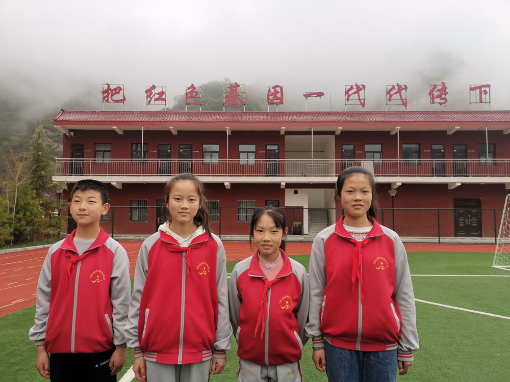 △北梁红军小学四位六年级学生,右一为王天娇