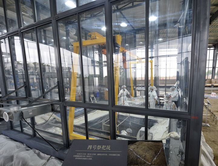 三星堆四号“祭祀坑”考古发掘现场,从这里的灰烬中首次发现了丝素蛋白成分。(新华社记者刘坤摄)