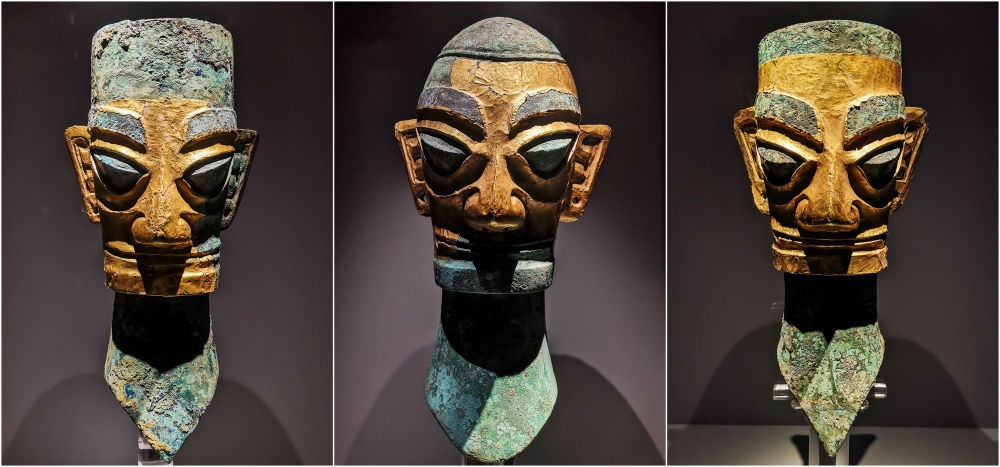 三星堆的金面具则被认为是用于祭祀场景