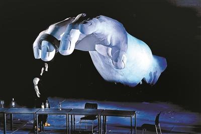 德国多媒体艺术家为《伤心咖啡馆之歌》舞台带来了3D云模拟技术,在孟京辉眼中,他是一个流浪式的梳着小脏辫的艺术家,“之前我们做过《狐狸天使》,我们一直都是这样,什么都不告诉他,他问戏排成什么样了,我们不说,就告诉他先做几个好玩的东西来看看,结果他做了一个炸裂的感觉,我还挺喜欢。这次《伤心咖啡馆之歌》的多媒体并没有特别炫,他用病菌做各种侵占,用数学的算法或是一种菌丝的方法来做好多特别奇怪的东西,我说我最喜欢的其实就是那一条线,这才是大师的作品。大海的一切给了这个戏无可替代的视觉奇观感,在回归剧场后我们依然有得玩,比如我们这次没玩传送带,到了剧场可以再玩玩传送带,这次也没有更多利用游泳池,很多我们都没有玩到极致。”