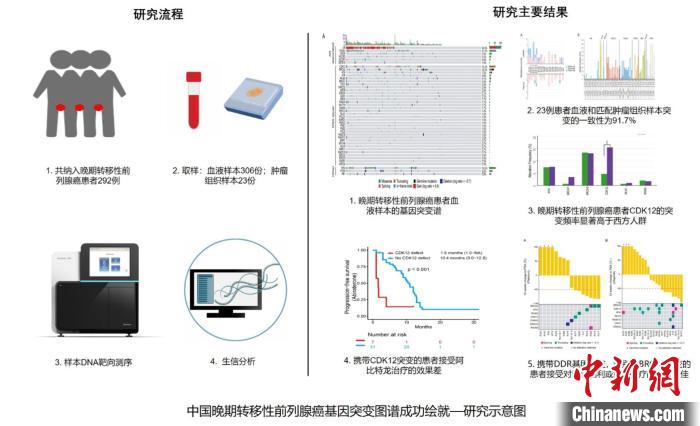 中国多中心大样本量研究,成功绘就中国晚期转移性前列腺癌患者血液样本的基因突变图谱。 研究示意图