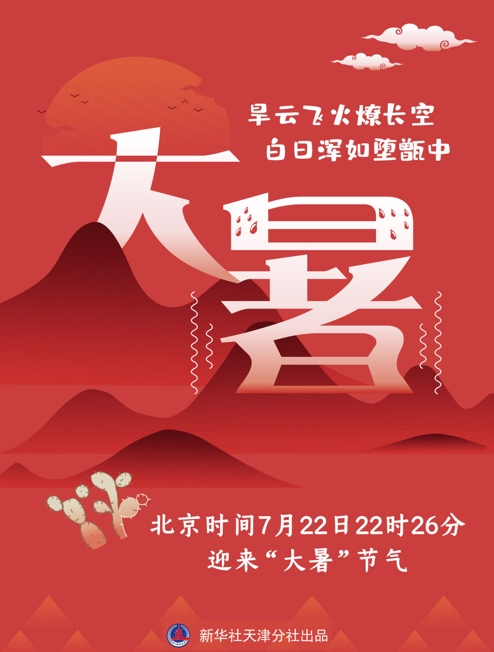《2021年中国天文年历》显示,北京时间7月22日22时26分将迎来“大暑”节气。这是一年里最热的时候,我国多地会出现高温天气,公众要注意防暑降温。