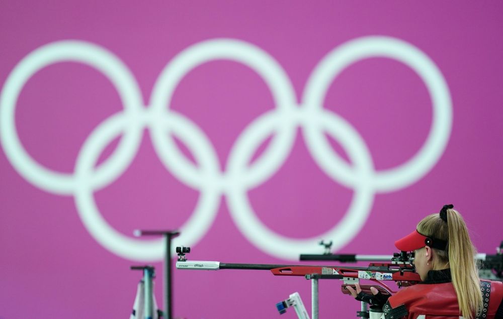 7月20日,丹麦射击队队员伊布森在训练中。(新华社记者鞠焕宗摄)