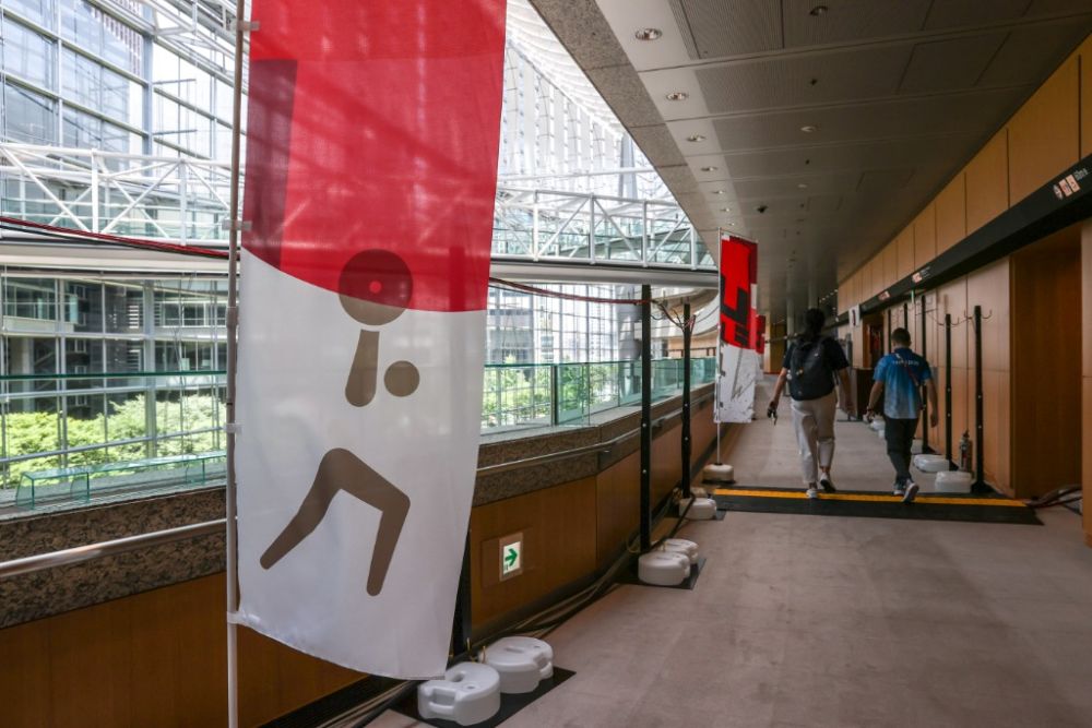 7月20日拍摄的东京奥运会举重比赛场馆——东京国际论坛大厦内景。(新华社记者杨磊摄)