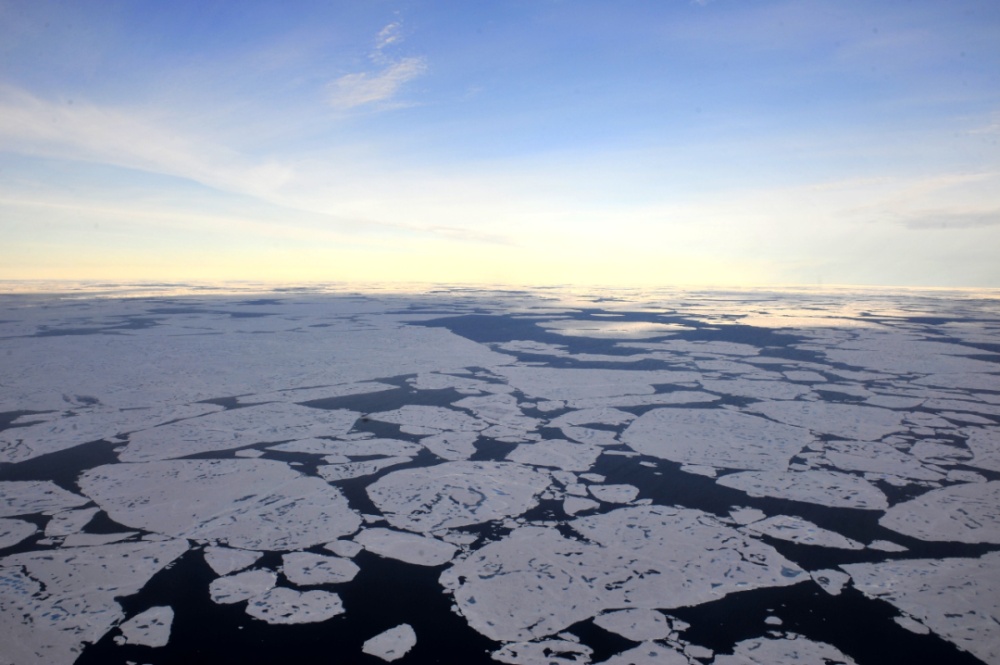 北冰洋是受地球气候变化影响最快的一个地区,当我们乘坐直升机到达北极点的时候,我拍了很多照片,印象最深的是,北极点周围的海冰是未融先开的——已经裂开了。