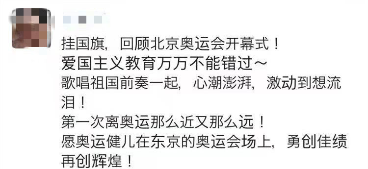“《歌唱祖国》前奏一响起,心潮澎湃,激动到想流泪!愿中国奥运健儿在东京奥运会赛场上,勇创佳绩再创辉煌!”