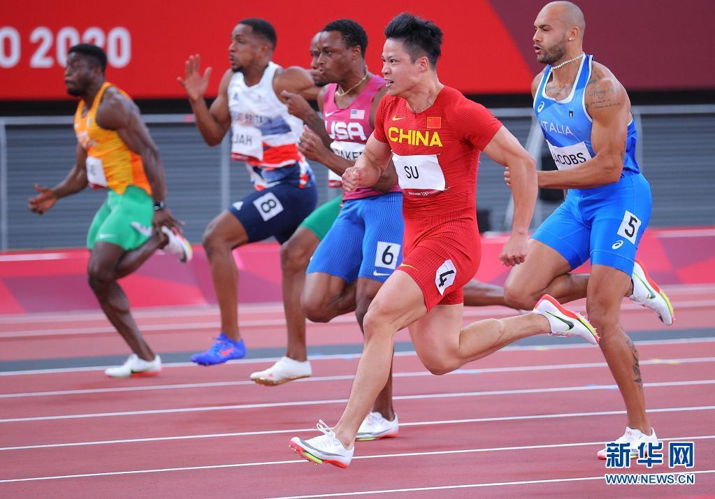 8月1日,苏炳添在比赛中。当日,东京奥运会田径男子100米半决赛在东京新国立竞技场举行。新华社记者 李明 摄