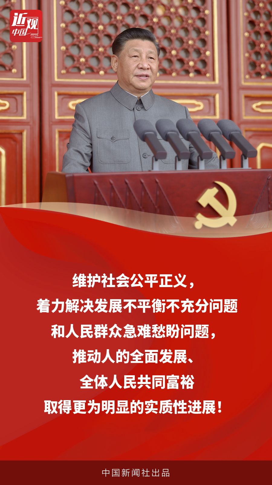 在7月1日中共百年华诞庆典上,习近平宣示:维护社会公平正义,着力解决发展不平衡不充分问题和人民群众急难愁盼问题,推动人的全面发展、全体人民共同富裕取得更为明显的实质性进展。