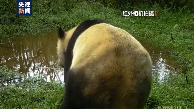 在保护区内的一处水塘边,红外相机多次拍到有成年大熊猫前来饮水,饮水前还一直左右张望,十分警觉。