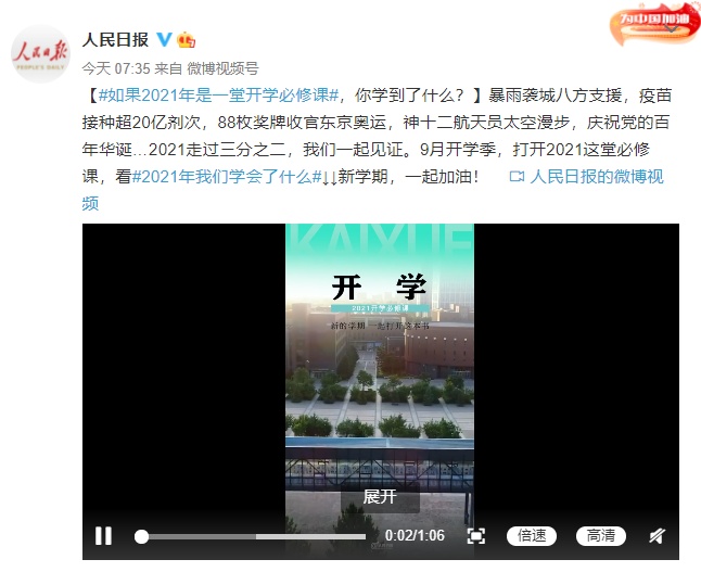 暴雨袭城八方支援,疫苗接种超20亿剂次,88枚奖牌收官东京奥运,神十二航天员太空漫步,庆祝党的百年华诞……2021走过三分之二,我们一起见证。9月开学季,打开2021这堂必修课,看2021年我们学会了什么。新学期,一起加油!