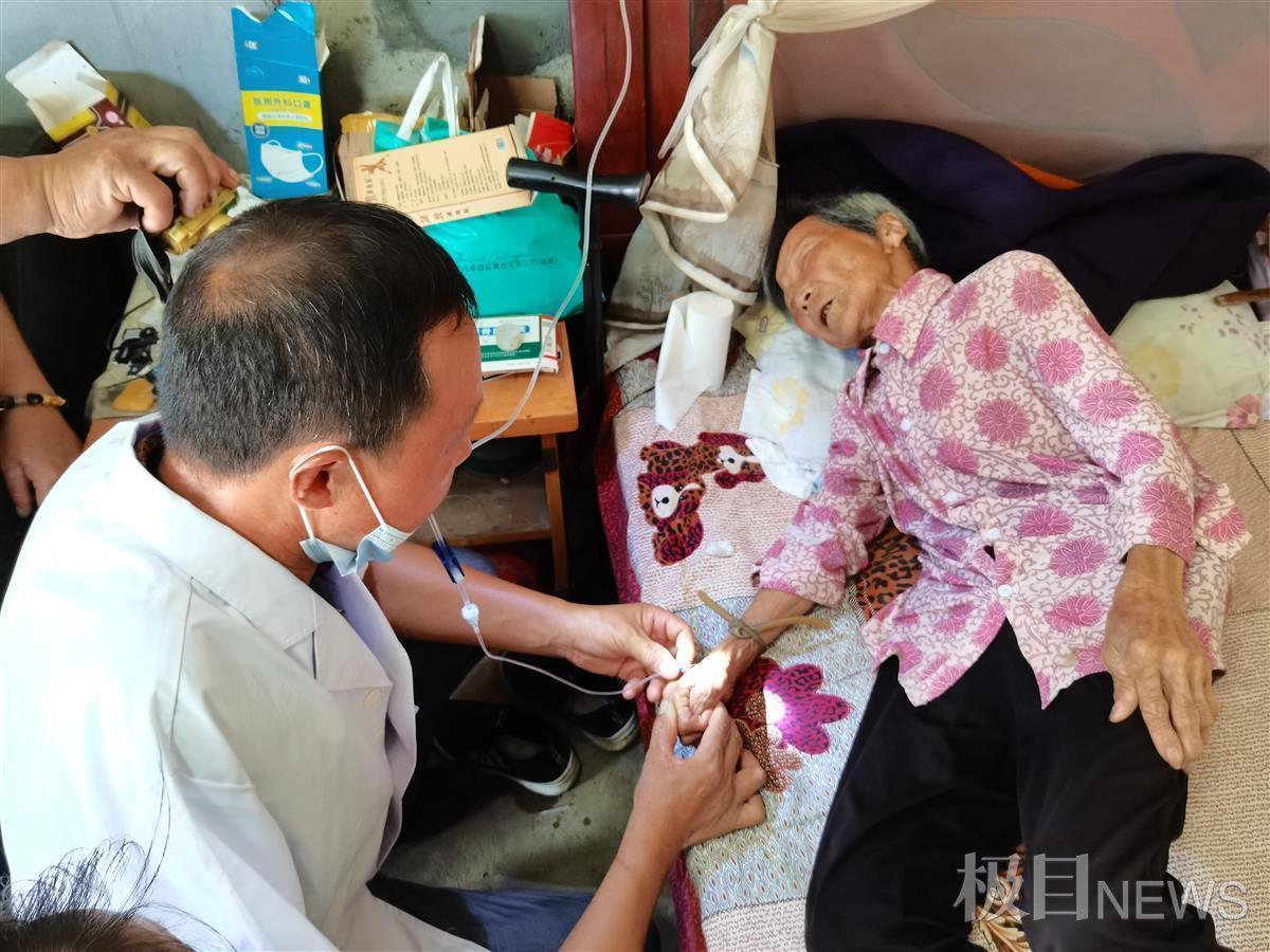 离开程福坤家,王文艮又匆匆来到82岁的老人龚家凤家,老人因为高血压发作,头晕难受。王文艮在给老人量了血压之后,配了药,给老人打了针。