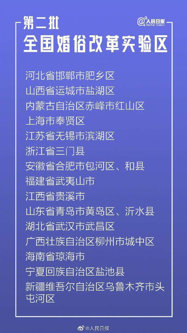 近日,民政部将将河北邯郸市肥乡区、山西运城市盐湖区等17个单位确认为第二批全国婚俗改革实验区。实验时间自2021年9月起至2024年9月止。这些实验区将对婚嫁陋习、天价彩礼等不良社会风气进行治理,助力婚姻家庭幸福稳定。