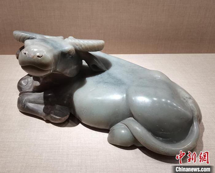 展品碧玉花卉纹果盘。 戚亚平 摄