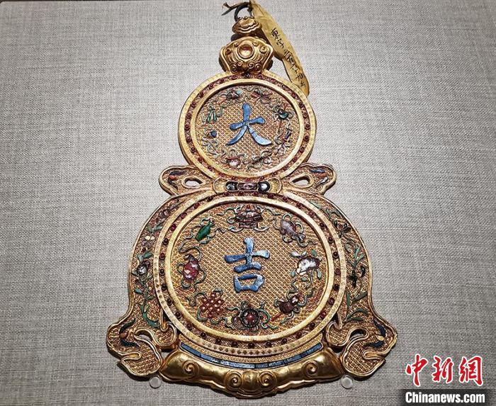 展品金“大吉”葫芦式挂屏。 戚亚平 摄