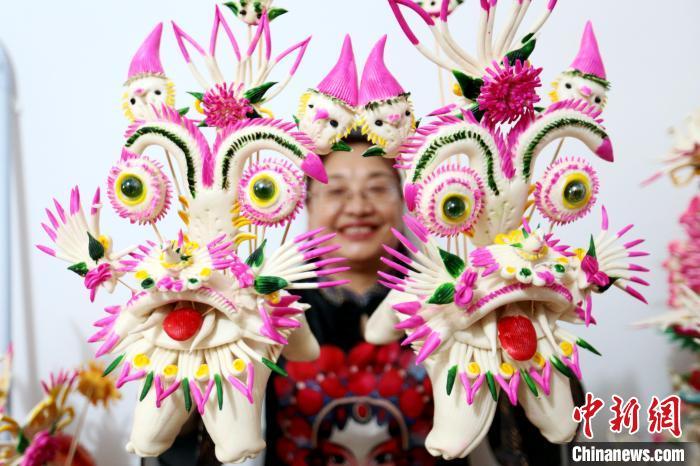 图为岳若惠展示花馍作品。 张远 摄