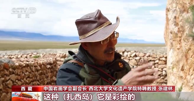 中国岩画学会副会长 西北大学文化遗产学院特聘教授 张建林:贺兰山画像大部分是凿刻成的,这种是彩绘的,带有我们青藏高原自己的风格。