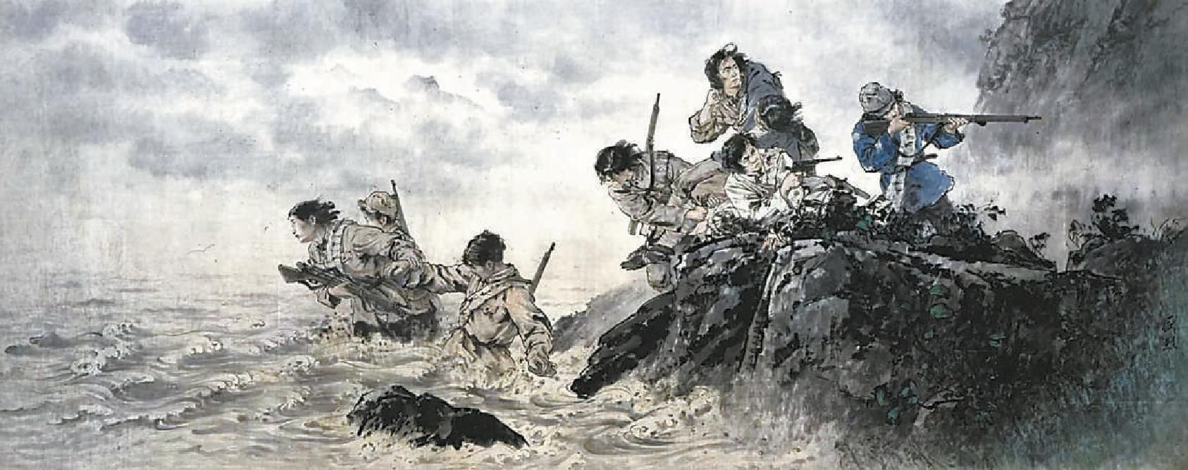上世纪50年代,传统中国画在表现现实主义题材方面还比较薄弱。早年曾学习过油画的王盛烈试着在《八女投江》的创作中借鉴西洋绘画的方法,将传统中国画的笔墨技巧和西画的素描结构巧妙结合起来,使这幅画在选材、技法上都具有了一定的里程碑意义,成为新中国成立初期中国画变革中的代表作。“父亲的这件作品被列为国家一级文物,收藏于中国人民革命军事博物馆,还曾收录在小学课本里,印在了一代人的回忆中。”王铁牛说。