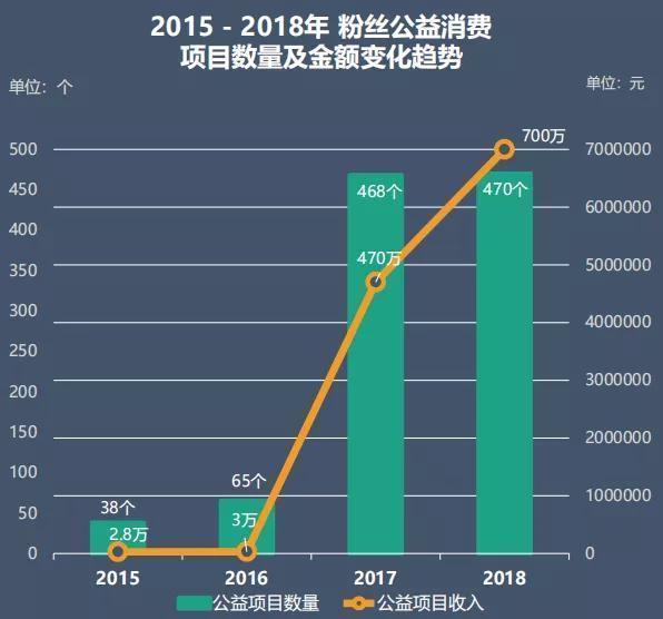 “在2015至2018年,粉丝公益项目数量增长11倍,筹款金额增加249倍。”《白皮书》称,在2018年,粉丝公益项目为470个,金额约为700万元。(注:《白皮书》并未提及判定筹款项目是否为公益项目的标准是什么。)
