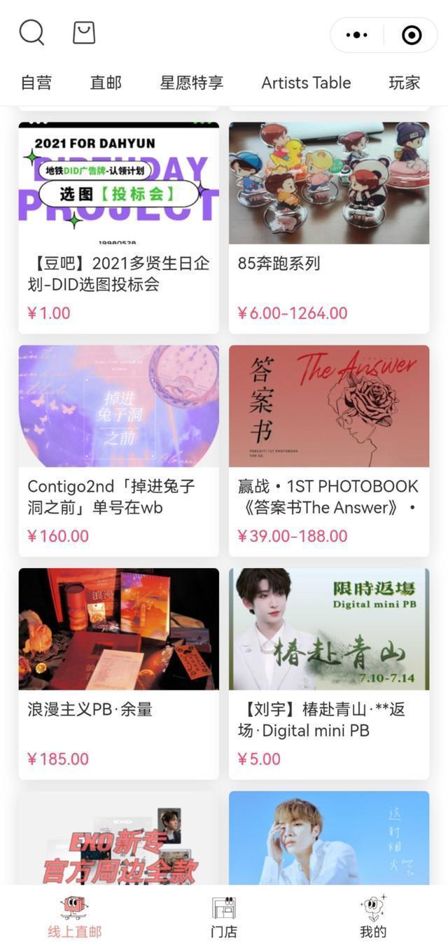 在该小程序首页,仍能看到很多关于明星的周边产品,徽章、专辑、photobook、画报……有的是粉丝团推出的产品,有的是Owhat官方推出的产品。