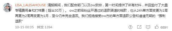 “我们拒绝接受ow方的单方面退款公告和遥遥无期的‘强制退款’。”上述粉丝团称。