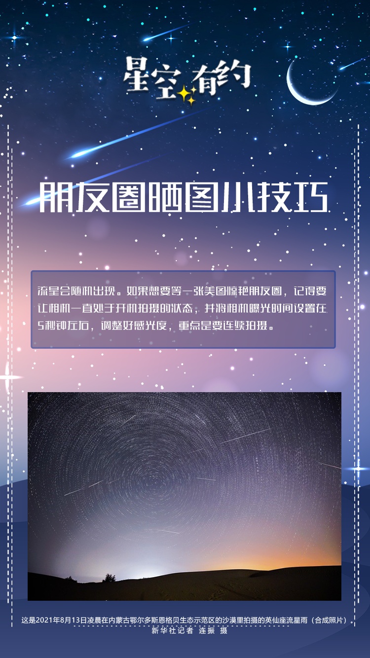 此外,流星会随机出现。如果想要等一张美图惊艳朋友圈,记得要让相机一直处于开机拍摄的状态,并将相机曝光时间设置在5秒钟左右,调整好感光度,重点是要连续拍摄。