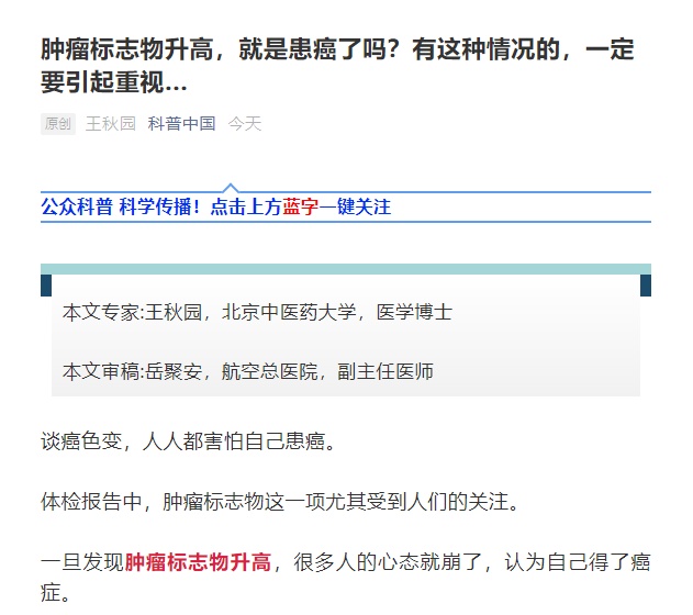 原标题:肿瘤标志物升高,就是患癌了吗?有这种情况的,一定要引起重视…
