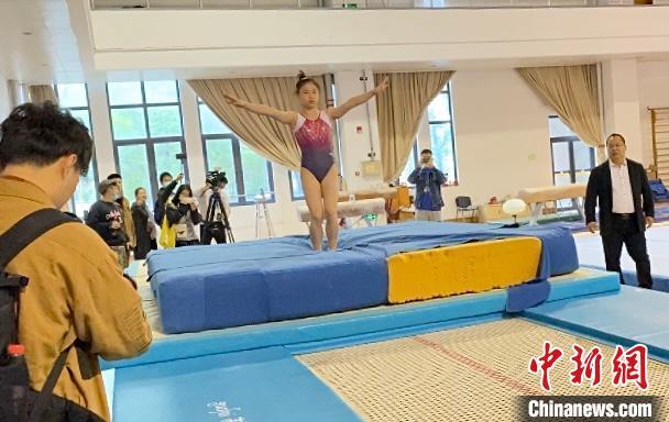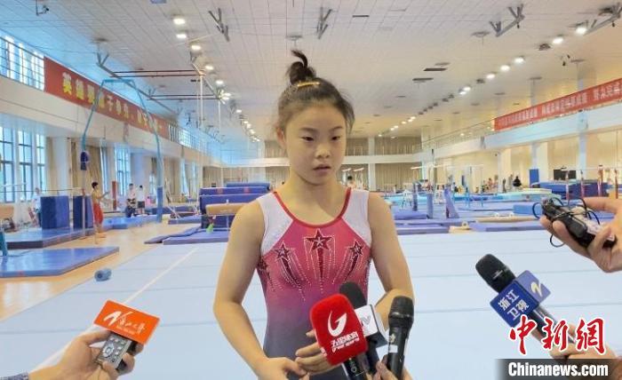 初见管晨辰,扎着“丸子头”、身着玫红色体操服的她正在浙江体育职业技术学院进行体能恢复的训练,备战明年的杭州亚运会。面对来自数十家媒体的“长枪短跑”,她先是略显紧张,但一开口,沉稳的谈吐让不少记者对这个2004年出生的女孩赞许不已。